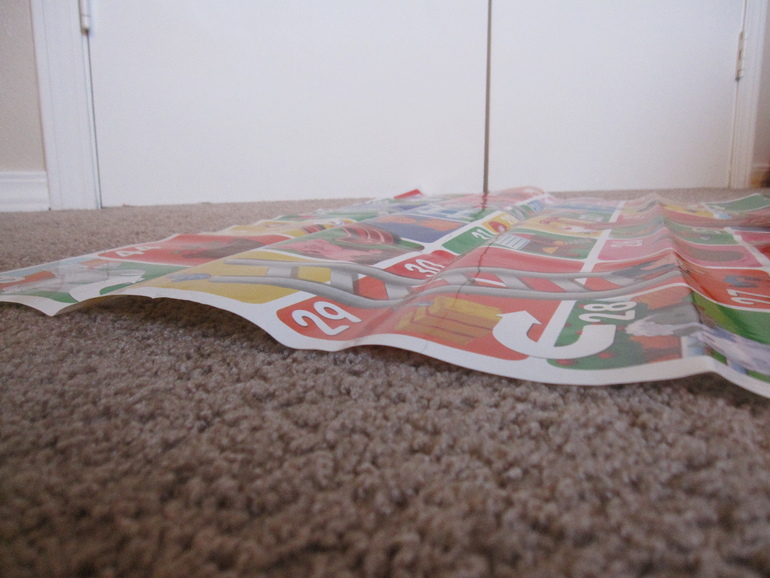 Во-вторых, мне не нравится материал самого поля и на вид, и в использовании. Поле сделано из тонкой клеенки, что уже не красиво. А поскольку поле нужно складывать в коробку после каждой игры, то когда его достаешь - оно не ровное, волнами, со сгибами. Это совсем не прибавляет удовольствия при игре.