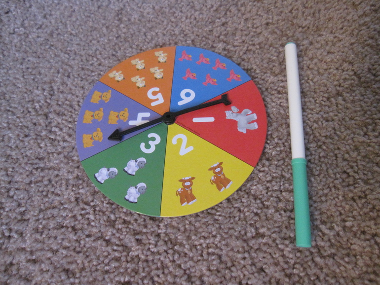 Перед первой игрой вертушку надо было собрать из 3 частей - картонного основания и пластмассовой стрелки с подставкой. Поле вертушки разделено на 6 секторов. Стрелка крутится неплохо.