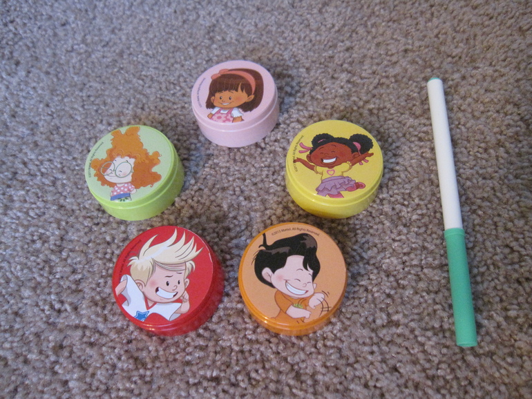 Фишки тоже большие, под стать полю, пластмассовые. Изначально на фишки нужно было наклеить наклейки с изображениями детей.