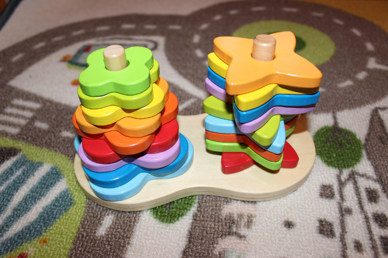 Как и всегда, Hape яркий и красивый. Хорошая пирамидка, деталей много, вариантов сборки тоже)