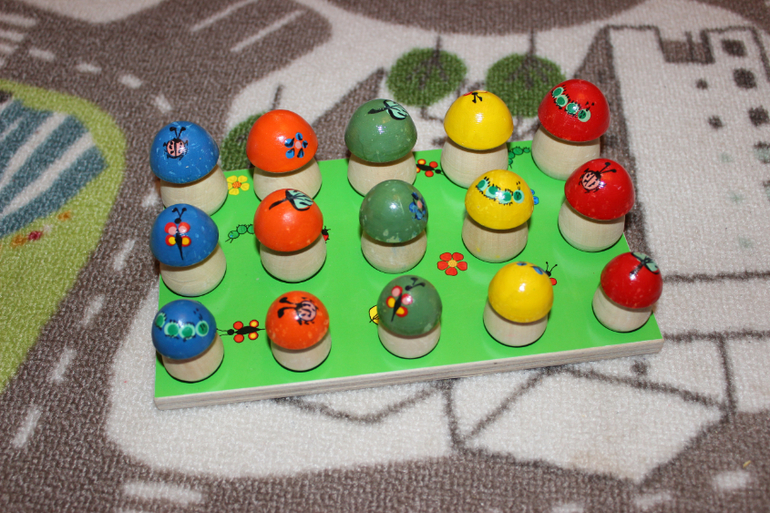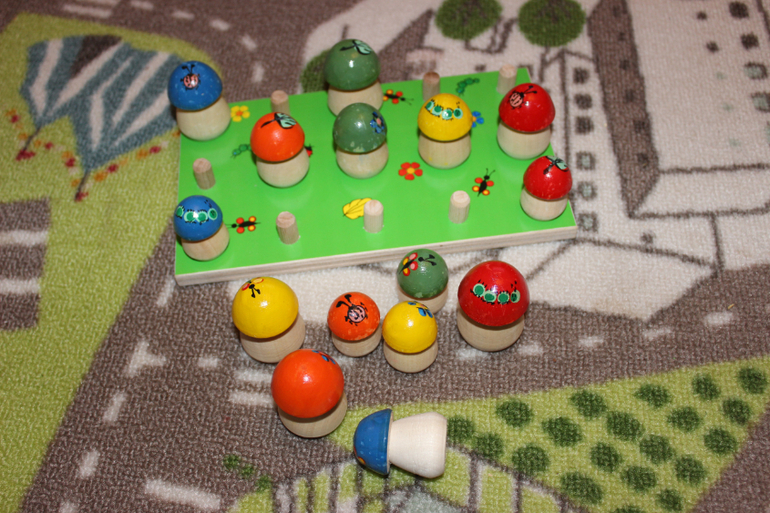 Счетный материал "Грибочки на поляне". Мне кажется это маст-хэв среди игрушек для ребенка от года. Тут и цвета, и размер, и разные элементы на шляпках... Ну и конечно счет. Стоит он очень недорого. Советую однозначно!