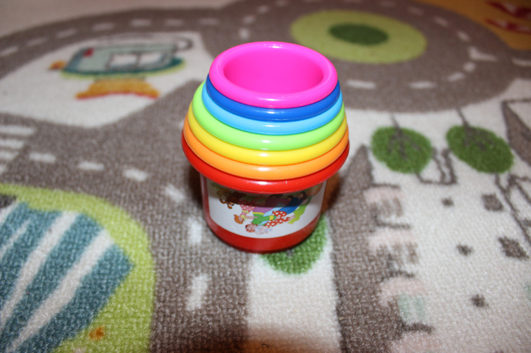Далее пирамидка, которая тоже является востребованной у Кости. Это пластиковая пирамидка Стеллар. Хотя скорее пирамидка-сортер. Отличный недорогой вариант.
