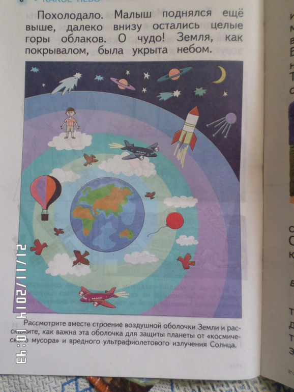 Ребенок узнает, что наша земля - окутана слоем воздуха, как одеялом