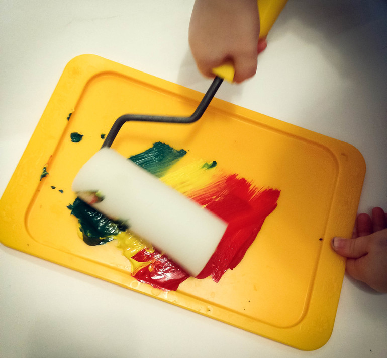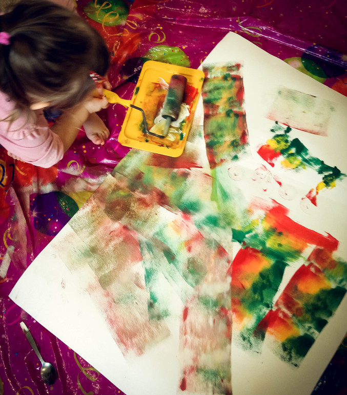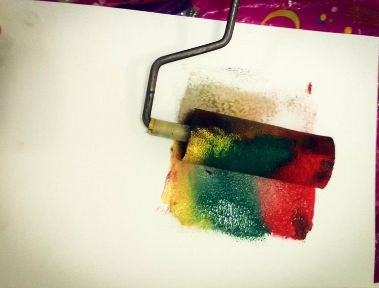Взяли гуашь, валик, ватман, поднос и понеслось)))
