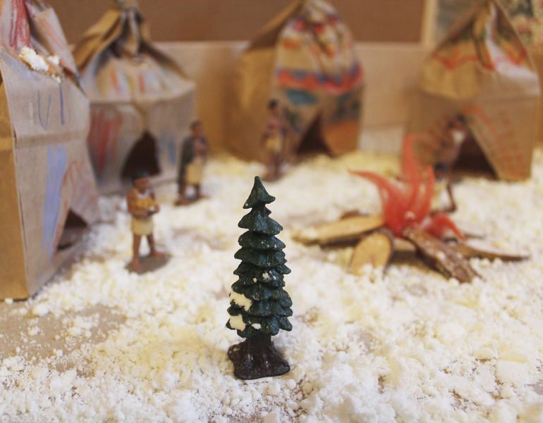 Но однажды утром в деревню индейцев пришла зима!! Но не такая зима, когда всё сразу заваливает снегом, а очень скромная пока зима - ну, как в Москве ))