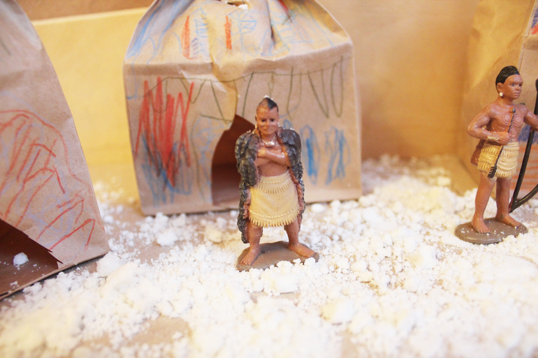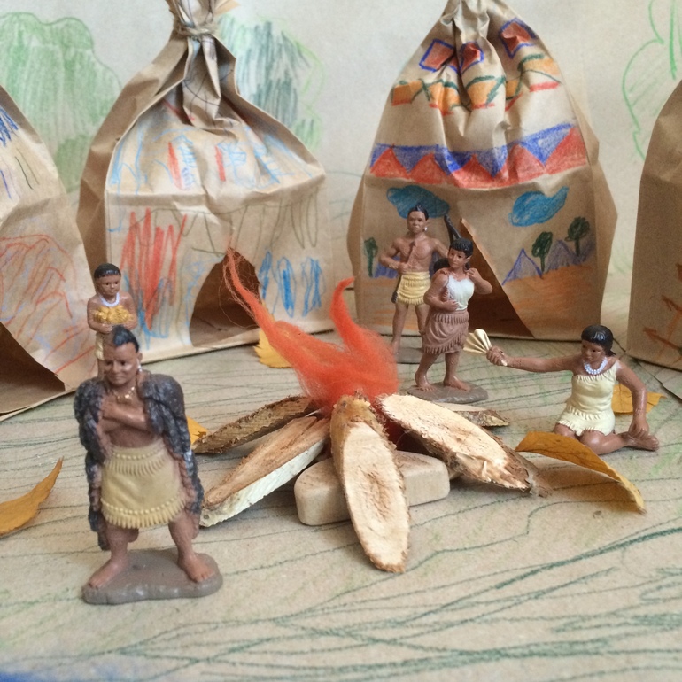 У нас получились на некоторых типи даже целые сюжеты )) И похоже, наши индейцы оценили новое жилище по достоинству ) А также реку и костер из шерсти)