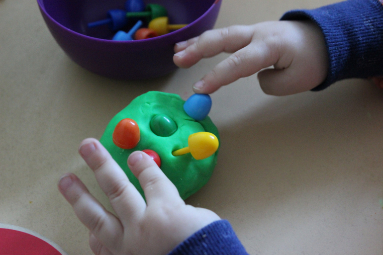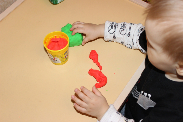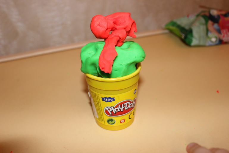 Начну пожалуй с лепки. Преимущественно мы пользуемся пластилином Play Doh (как оказалось это все-таки тесто для лепки). Пока я приобрела всего две баночки, нам вполне хватает, тем более что сын только и делает что катает колбаски и шарики, либо просто сидит и мнет его руками))