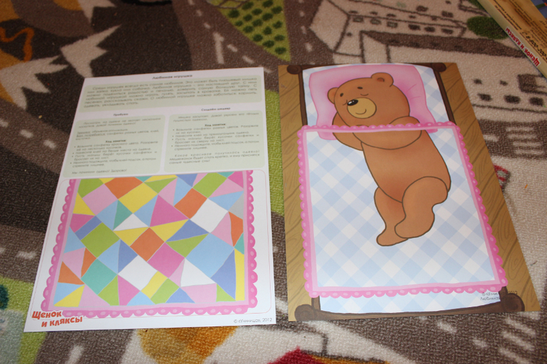 Здесь нарисовать одеяло для Мишки, а на рисунке слева докрасить пустые места на одеяле