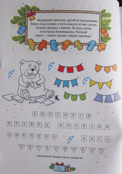 А еще в пособии есть кроссворд, сладкие рецепты, несложные лабиринты, примеры, как вырезать снежинки, информация, как встречают новый год в разных странах. В общем не соскучишься.