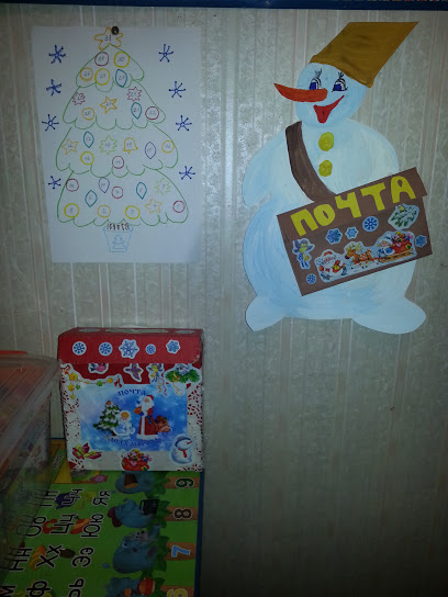 Ёлочка-раскраска для отсчёта дней, ящичек с прошлого года для крупных подарков и снеговик с сумкой для писем от Дедов Морозов разных стран.
