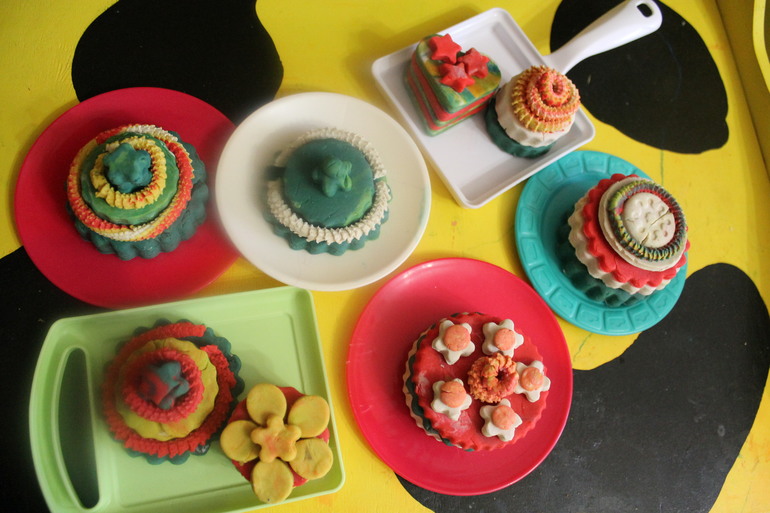 Из полузасохшего пластилина налепили тортиков и засушили их...правда мелкие детали нет нет отваливаются при игре
