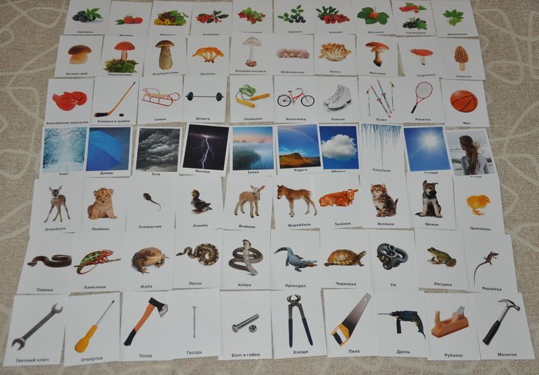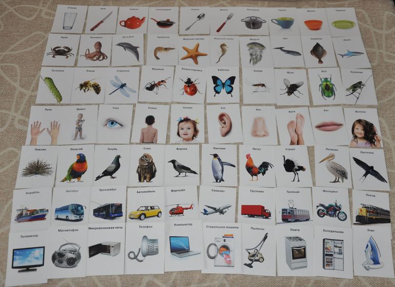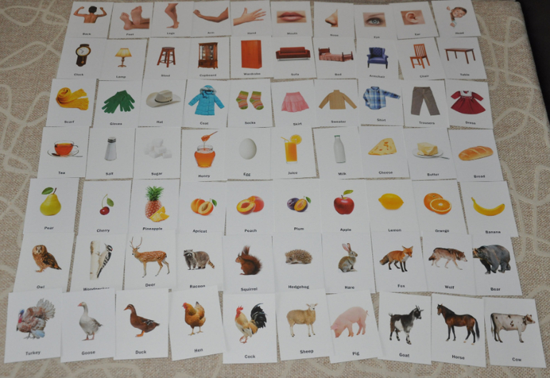 Что мне особенно нравится именно в этих наборах - это то, что, во-первых, на карточках даны реалистичные фотографии, а не рисунки, а , во-вторых, они изображены на белом фоне, что существенно облегчает восприятие.