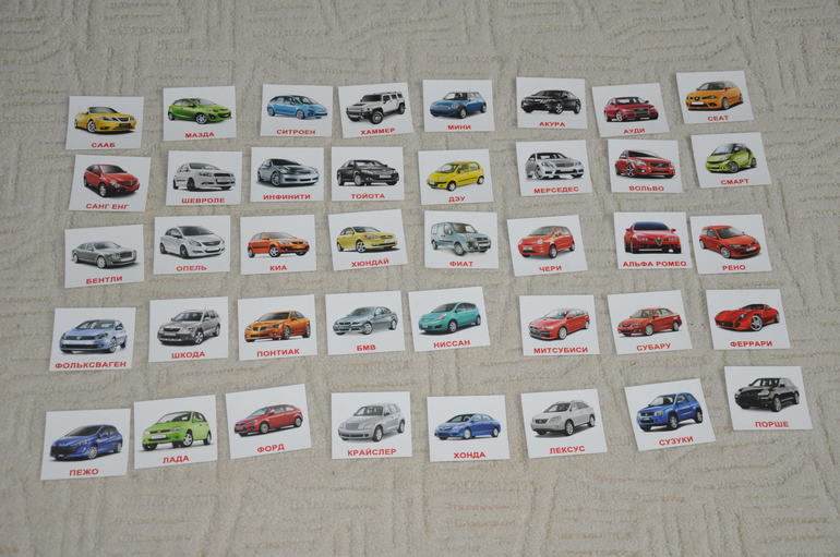 Сейчас Артур уже самостоятельно играет в такую же игру, но с карточками "Вундеркинд с пеленок", посвященным маркам автомобилей. Во время летних прогулок мы выучили все распространенные марки машин, а с этим набором еще несколько. И теперь Артур пользуется заслуженным уважением всех знакомых взрослых мужчин))