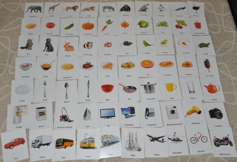 Надо ли говорить, какое существует количество вариантов игр и занятий с этими карточками?!! От простого изучения новых слов до игры в мемо-пары, лото и т.д.