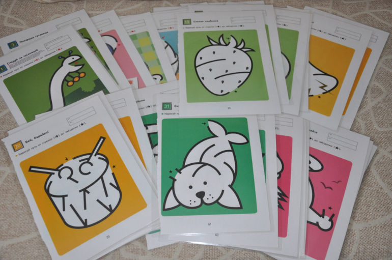 Занятия как таковые (буквы, счет, тренировка руки, Flocards и т.п) я разбиваю на две сессии по 20 минут в течение дня.