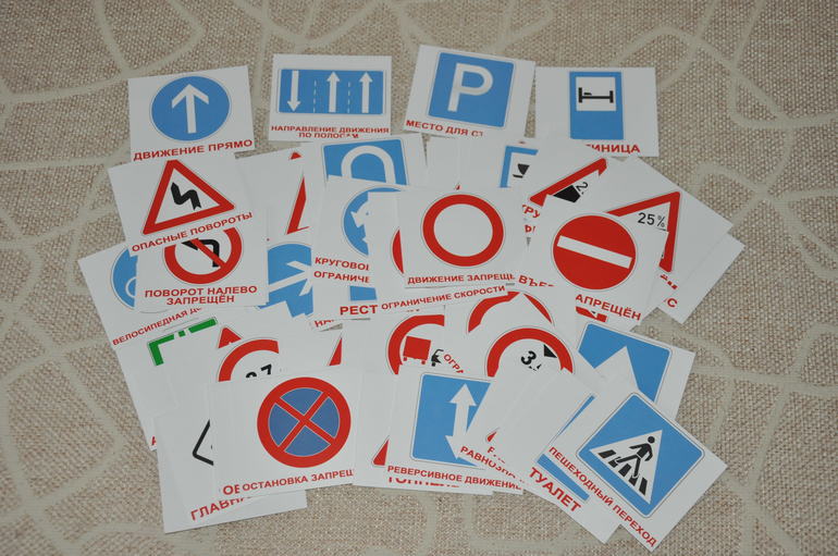 Еще из "Вундеркинда" у нас есть набор карточке "Дорожные знаки" - это тема, изучение которой сейчас занимает Артура на улице и во время поездок на машине: