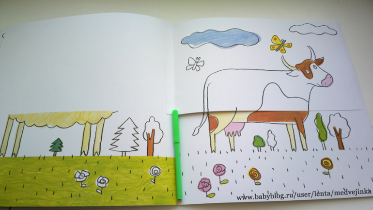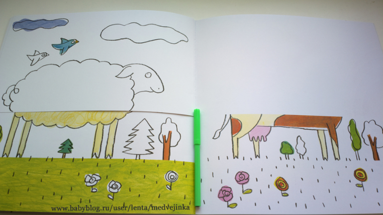 Большой плюс в том, что книга большого формата, на каждой страничке можно что-то дорисовать.