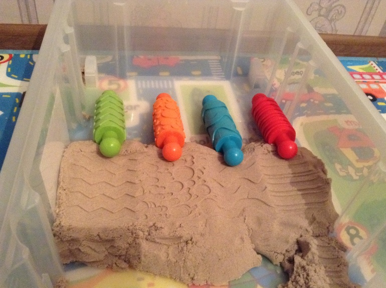 Игры и игрушки для малышей от 1 года до 2х летКупили мы замечательные скалочки в elc и уже попробывали ими покотать по песку кинетическому ! Так же можно ими катать по пластелину , по тесту и по краске. Мы очень довольны , рекомендуем. контейне из obi