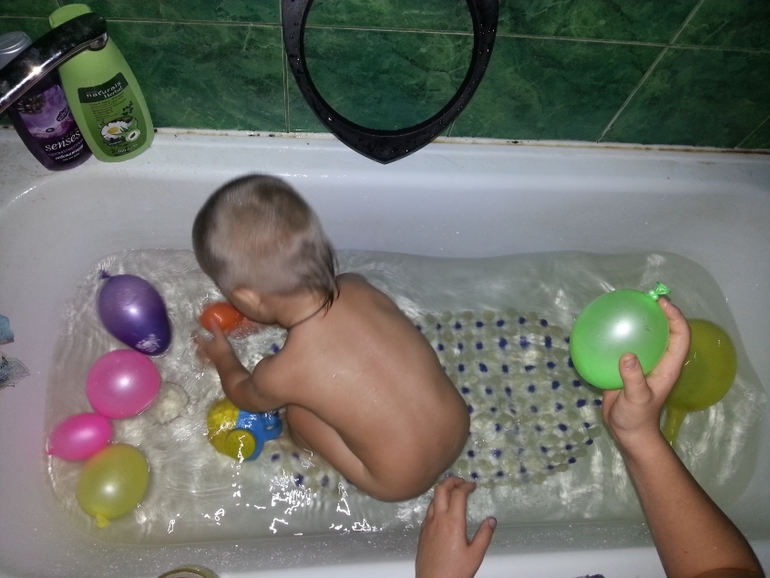 Игры в ваннойу нас есть как самодельные игрушки из пенки, набор пазлов, а недавно делали баскетбол из шариков с водой и кольца (подставка для аквариума)