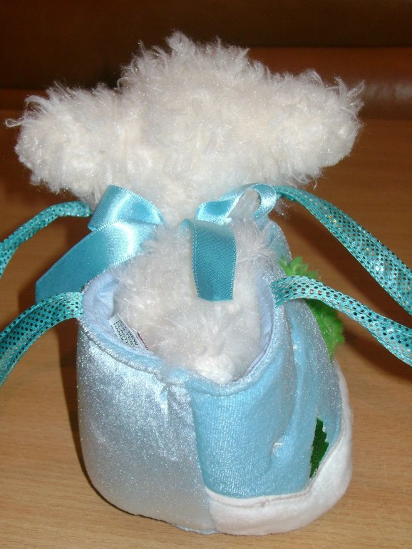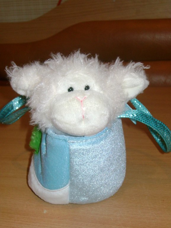 Барашка хорошо держится в сумочке,при помощи завязанных на бантик ленточек
