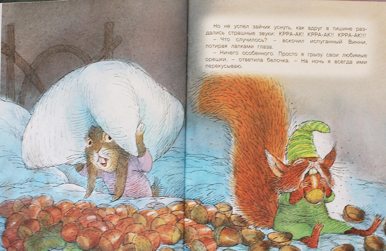 Книга очень качественная, плотные глянцевые страницы, рисунки выше всех похвал, очень добрые и уютные! Текст понятен даже малышу, его очень мало, бОльшую часть книги занимают именно иллюстрации.
