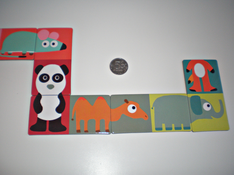 Очень интересное домино два в одном. И домино и пазл. Карточки двусторонние, с одной стороны изображены животные, с другой обычное классическое домино.