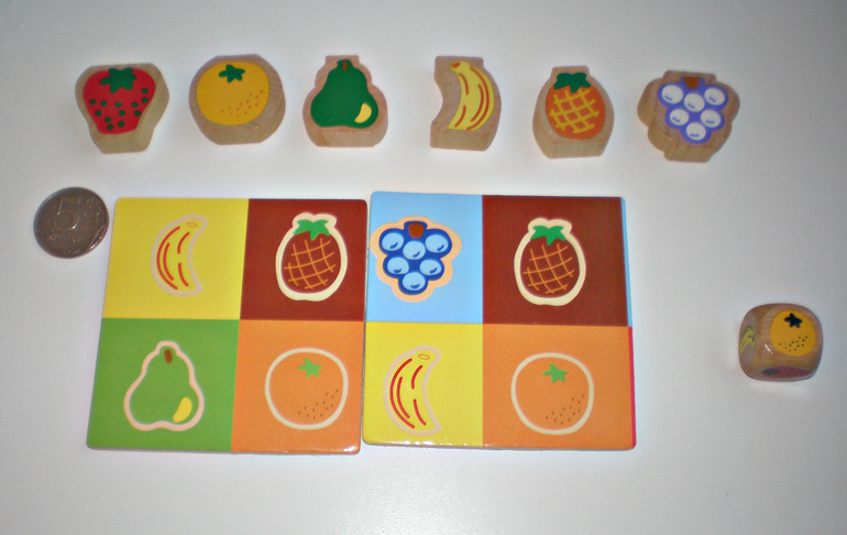 Кинуть кубик и аккуратно вытащить одну фигуру того фрукта,который выпал на кубике, проиграет тот, кто разрушит пирамидку. Это реально сделать нереально, после первого второго хода парамидка просто рушится.
