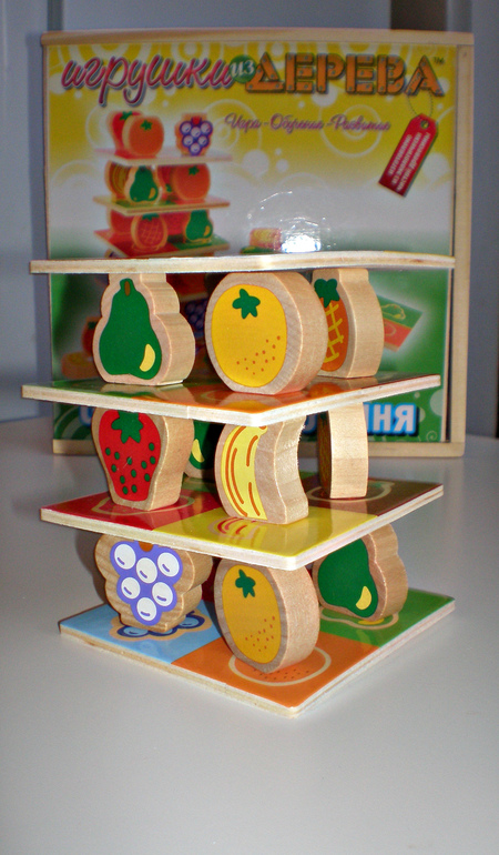 Достаточно интересная задумка, но воспроизведение хромает, с мужем пробовали поиграть. По задумке автора необходимо построить башню. Изображения деталей должны совпадать, когда парамидка будет собрана можно приступать к игре.