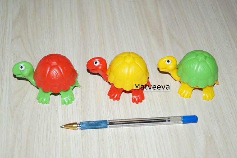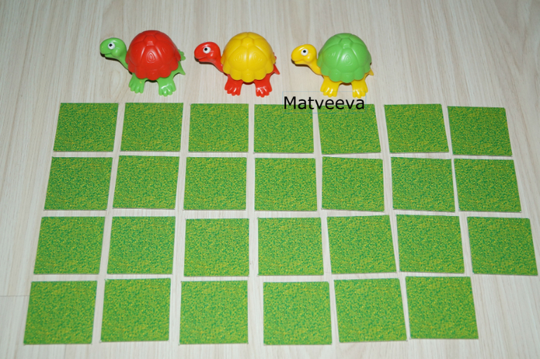 самый младший игрок ставит в центр стола черепашек и одевает им панцири любого цвета