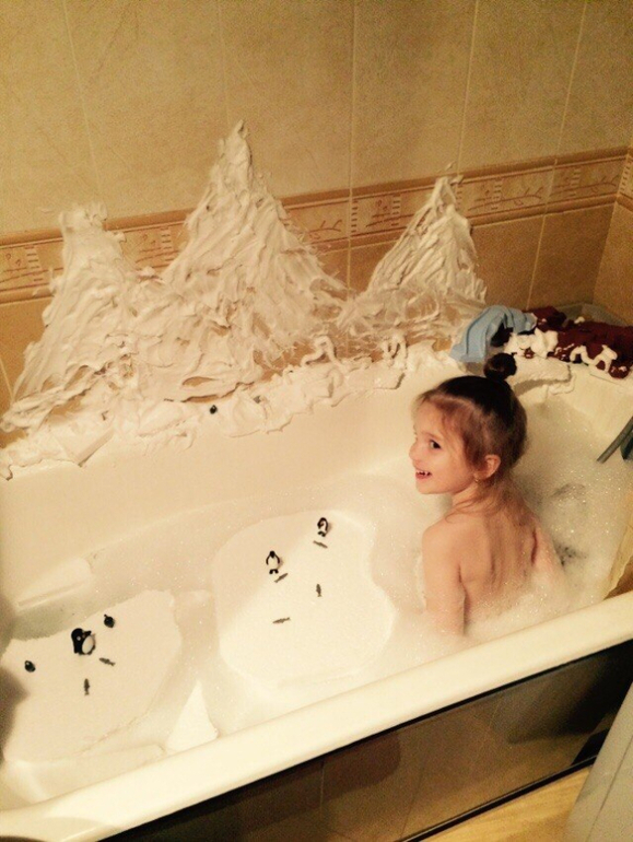 Игры в ваннойСофию очень привлекла тема пингвинов! И вчера мы отправились в плаванье к берегам Антарктиды!