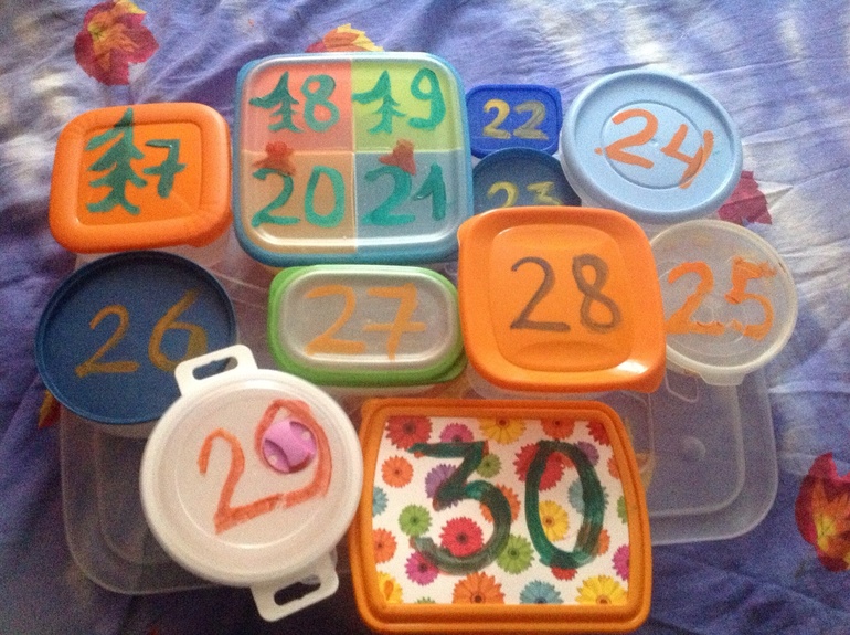 Вот на скорую руку за 2 минуты сделала адвент календарь.Фантазии не много,как и времени поэтому получилось вот такое вот ЧуДО)))