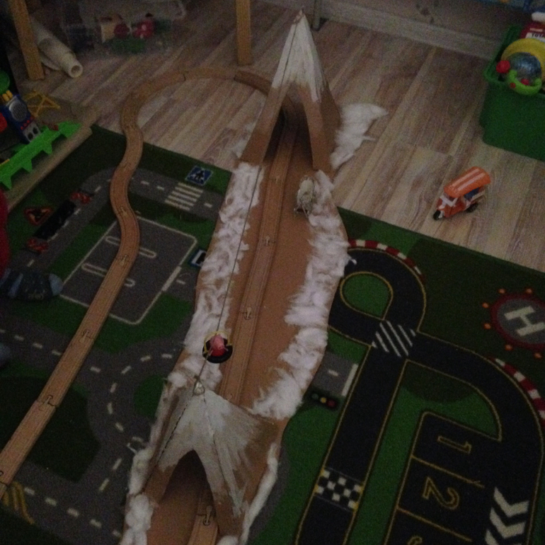Потом в дополнение к Дому появилась идея сделать снежную дорогу среди гор с канатной дорогой.