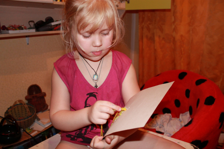 Мистер Умелец или Очумелые ручки (поделки, аппликации, интересные находки, идеи и задумки)рисуем на картоне простой рисунок по клеточкам, делаем дырочки в углах, помогаем малышу освоить основы вышивки, используем пластмассовую иглу с круглым наконечником