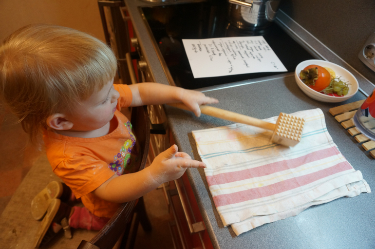 Из остатков теста мы сделали бусинки, теперь у Маши есть ароматный браслет, который не даст проголодаться!