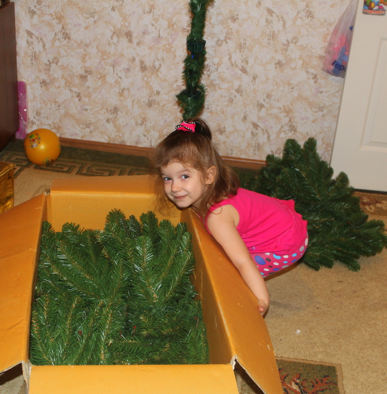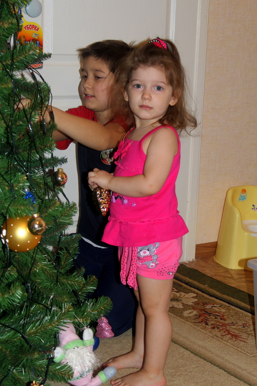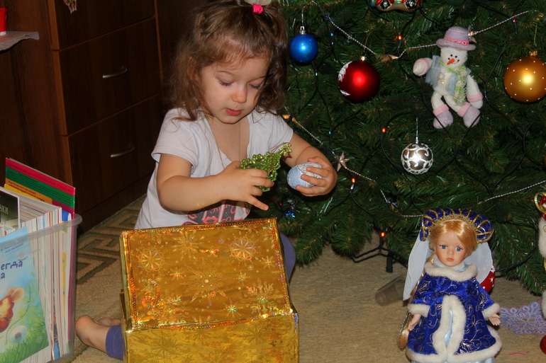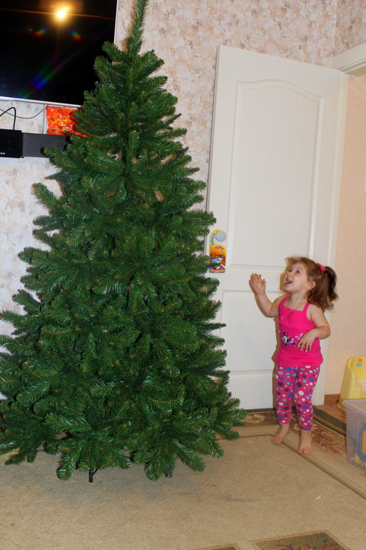 Елку всю нарядили, а звезду на макушку не поставили. Я решила подождать папу из командировки, что бы он дочку поднял и звезду она одела! Пусть это будет наша маленькая традиция)
