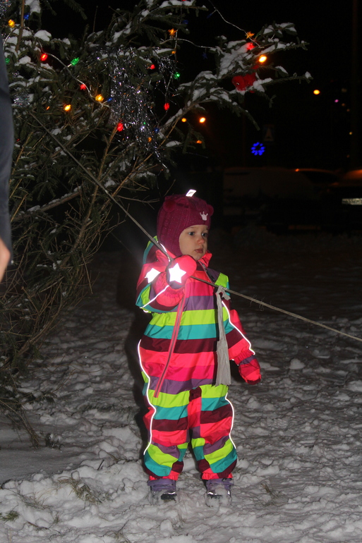 Наряжали елочку во дворе! Принесли ненужные игрушки, развесили их)))