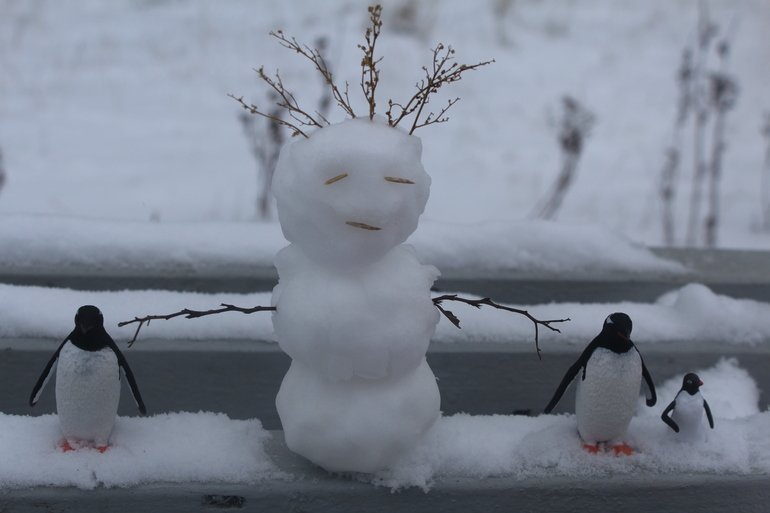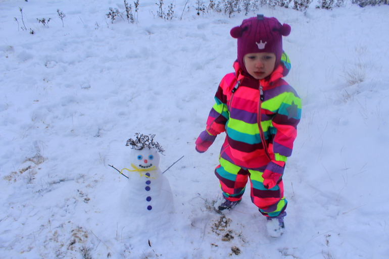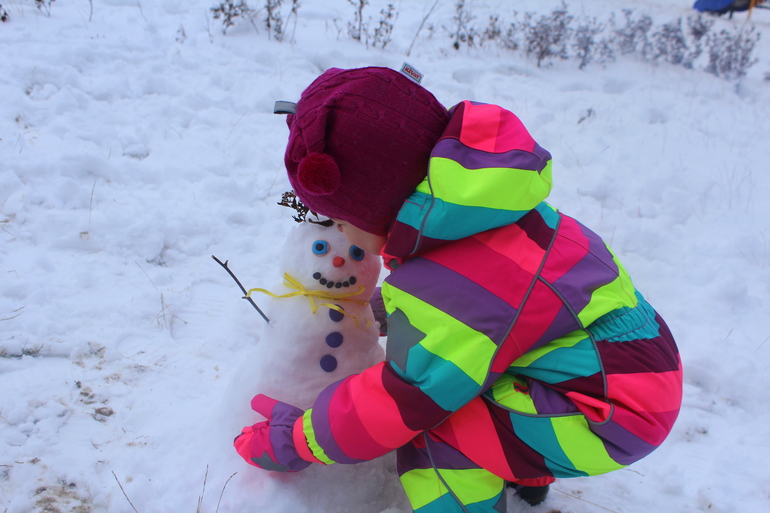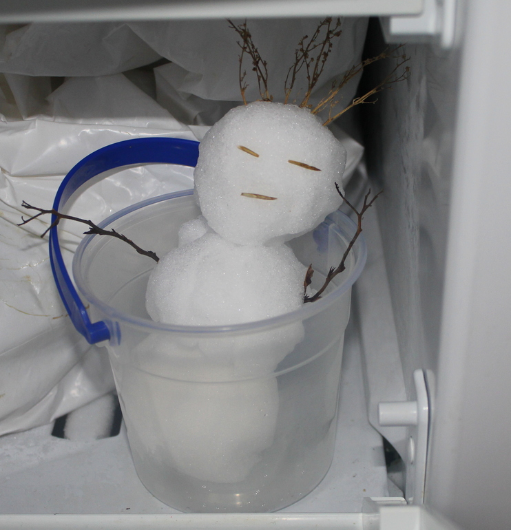 слепили мы с дочкой малюсенького снеговика и решили забрать его домой) Посадили в ведерко и понесли. сначала он жил в морозилке, а вечером мы выпустили его за окно) Это так здорово поднимает настроение! Я сама время от времени выглядывала его проведать и улыбалась) Такой узкоглазый он получился, китайский)