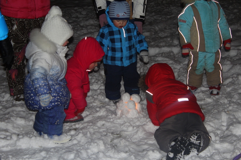 На следующий день делали снежные фонарики. столько ребятишек сбежалоь!!!!!!!! Так просто все, а столько вызвало восторга!!!!!