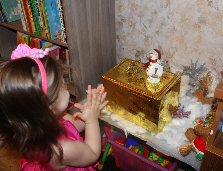Каждый день Настена рисует, много рисует и везде)с удовольствием играет в свою зимнюю сенсорную коробочку и в зимнем уголке.с самого утра ждет когда же снеговик положит ей "ааатку" (шоколадку) в ларец) И каждый раз очень радуется обнаружив подарочек и киндер в ларце)