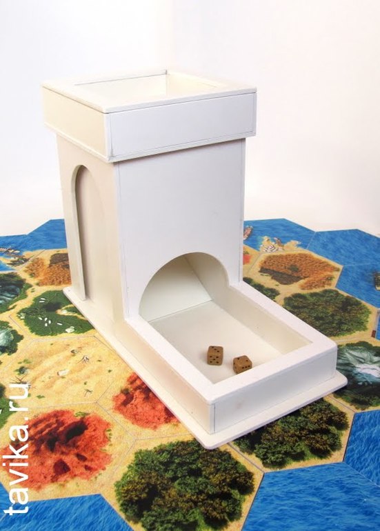 Настольные игрыЕе еще называют dice tower. Очень удобная и полезная вещь для тех, кто любит играть в настольные игры! Такой себе вариант рандомайзера - в нее кидаешь кубики, по пути они перемешиваются, скатываясь по наклонным плоскостям, расположенным внутри башни, и выкатываются на огороженную подставочку. Во-первых, такая башня исключает саму возможность жульниченья. Во-вторых, кубики не раскатываются по столу, не сбивают фишки и не падают на пол. Ну а в-третьих, башню просто сделать своими руками.