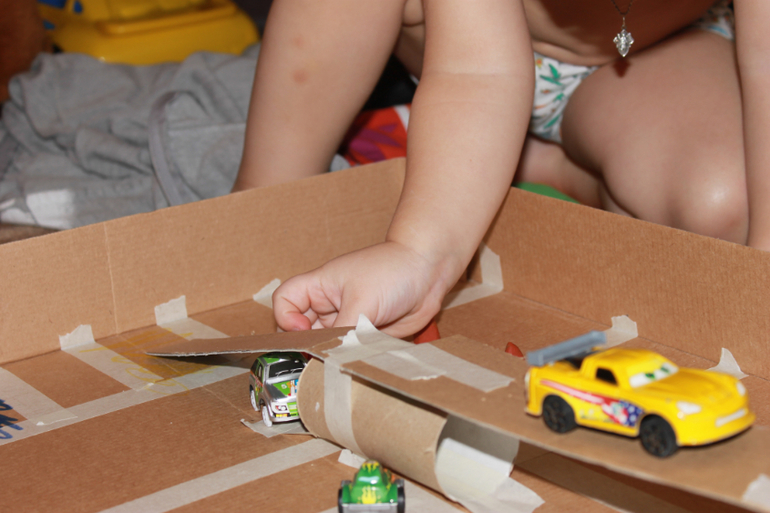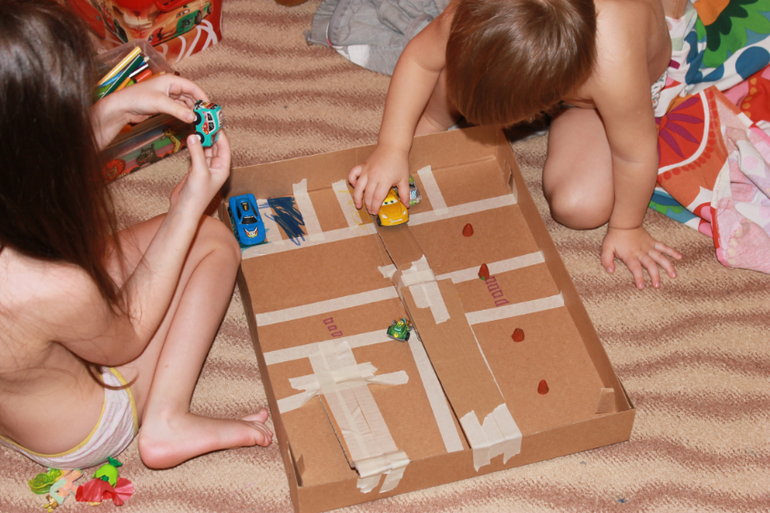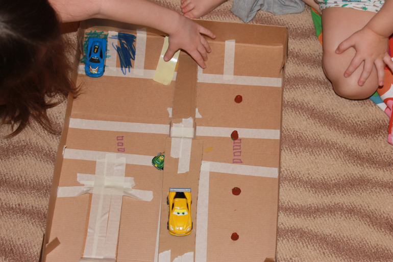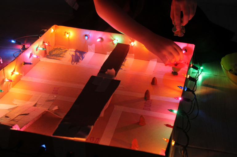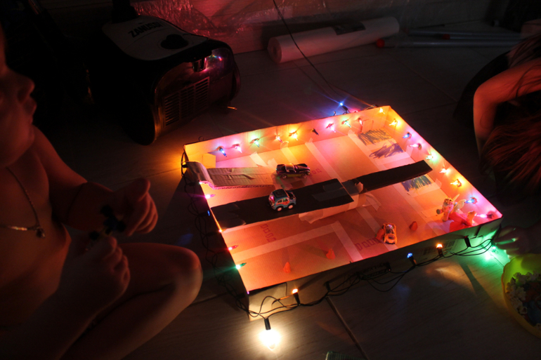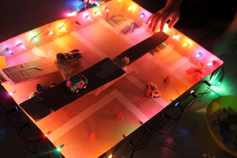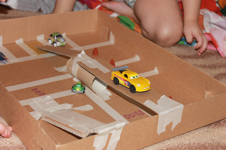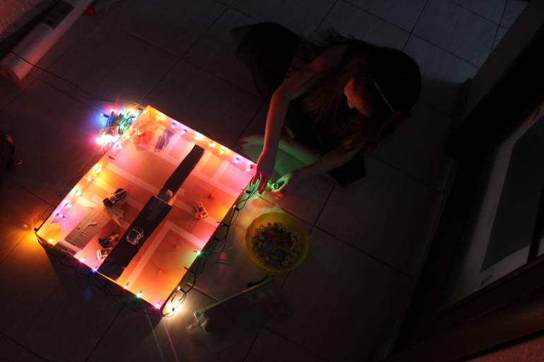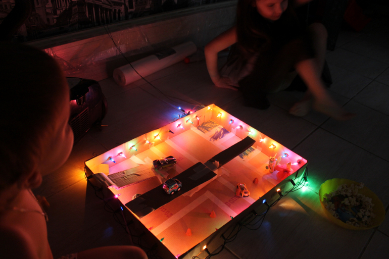 А когда детям надоел дневной вариант (примерно минут 40 играли), трек осветили разноцветными огнями