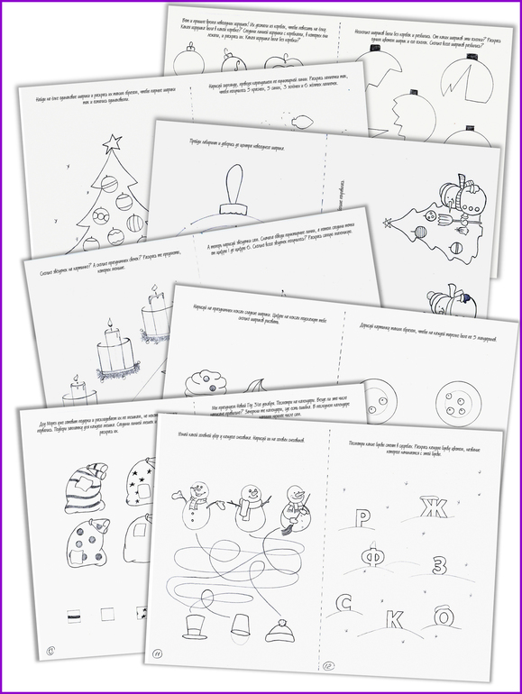 Димка очень любит разные карточки и книжки с заданиями на логику, где нужно чего-нибудь дорисовать, обвести, лишнее или одинаковое найти и т.д. Вот, за пару вечеров накидала ему небольшой зимне-новогодний комплект. Всего 7 листов, т.е. 14 заданий. Я карточки сделала совсем небольшими, чтобы удобно брать с собой) Отложу до выходных, ведь мы дома почти никогда не сидим, вот и будет ему чем заняться, если решим в кафе перекусить, или просто нужно будет чего-нить ждать)