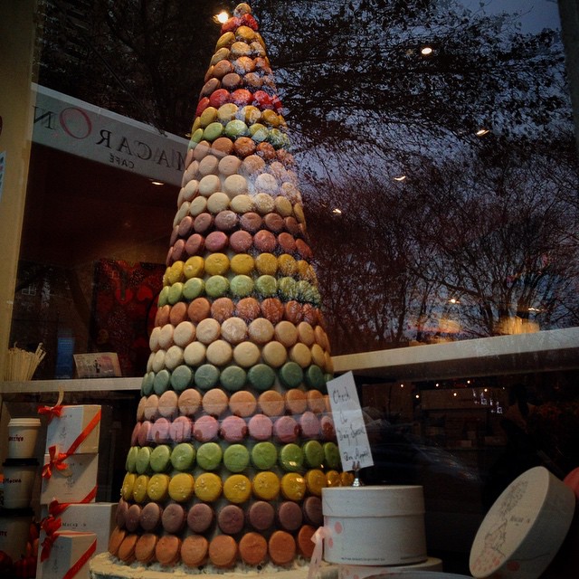 Эта елка из популярных нынче макарунов (macaron), у нас самые вкусные в Волконском, на мой взгляд:)