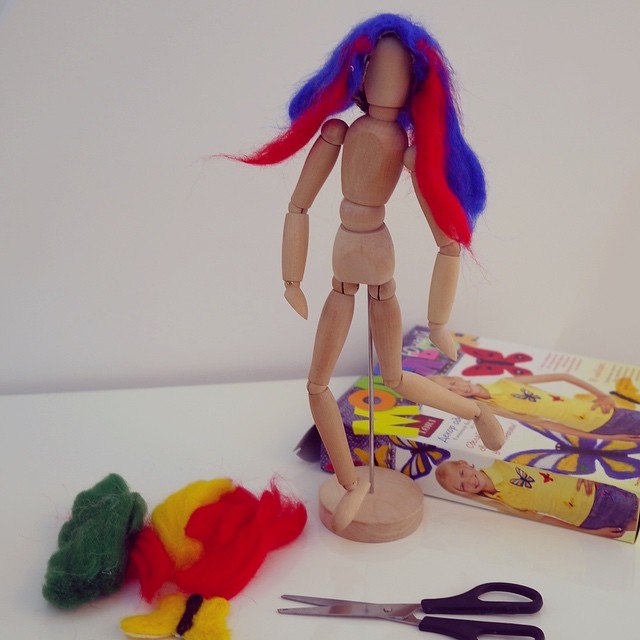 Мистер Умелец или Очумелые ручки (поделки, аппликации, интересные находки, идеи и задумки)Как-то хотели с дочкой освоить технику валяния. Особо не получилось, но вот осталась шерсть разноцветная из набора. Решили сделать смешные парики для кукол. Основа - детский носок младшего брата. На него аккуратно пришили кусочки шерсти. Дизайн принадлежит ребенку, пришивала конечно мама:))) Вот примерно так: