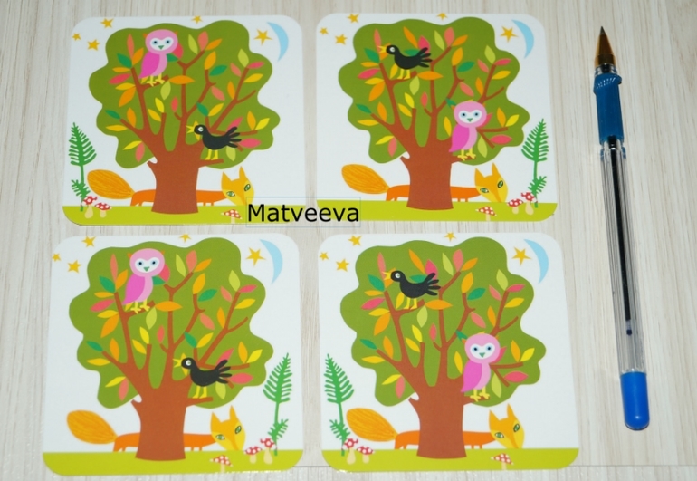 карточки двухсторонние) например на этой стороне лиса за деревом