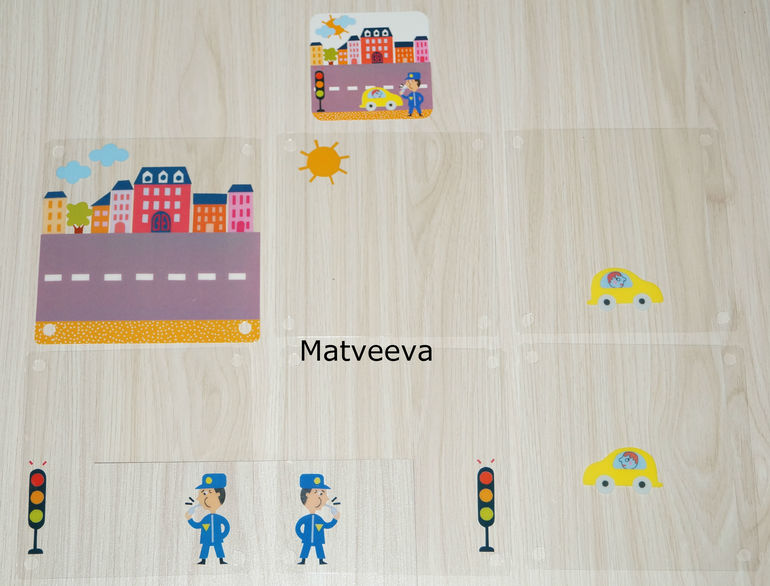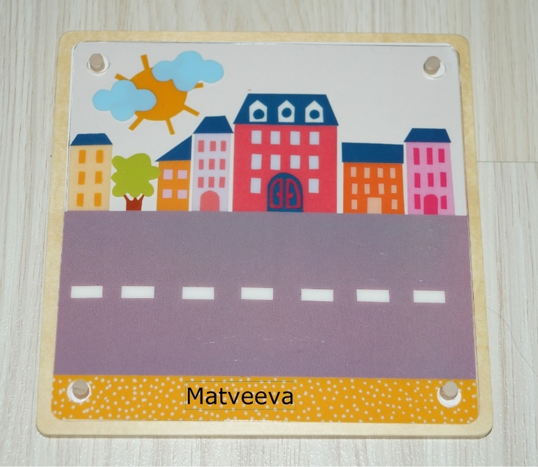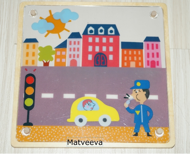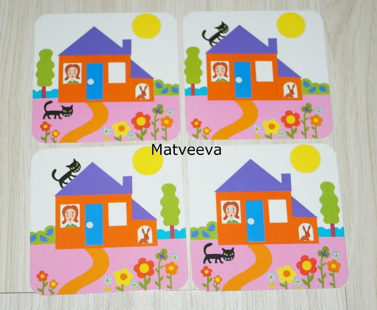 И начинаем выкладывать на деревянный планшет слой за слоем пластины с картинками так, чтобы в итоге у нас получилась такая же картинка, как в задании.