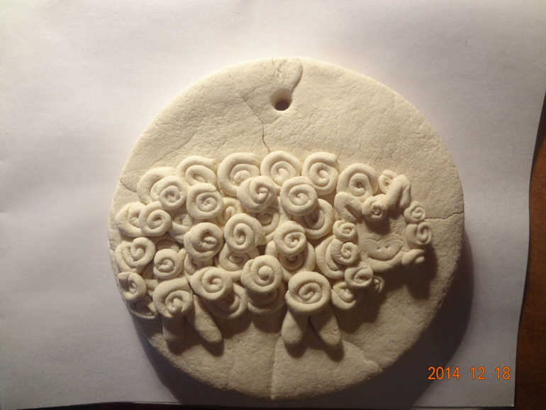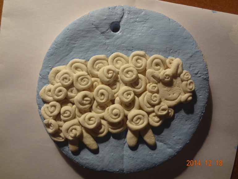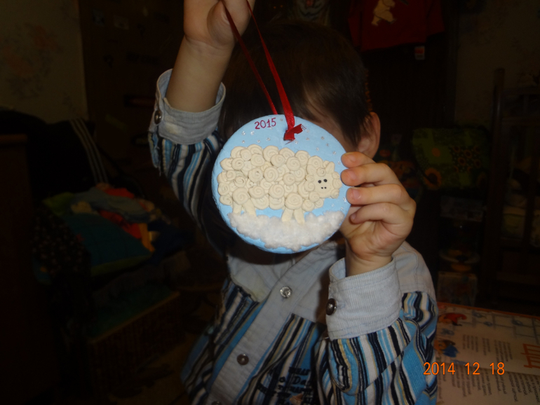 Мистер Умелец или Очумелые ручки (поделки, аппликации, интересные находки, идеи и задумки)Тема новогодней поделки в детском садике была ограничена, ёлочная игрушка. По размерам особо не разгуляешься. Всё думала что же сделать, фантазия работала больше на поделку покрупнее. И за неделю до сдачи, нам с сыном пришла чудная идея сделать ёлочную игрушку с овечкой из солёного теста. В голове выстроила набросок и начали ваять.