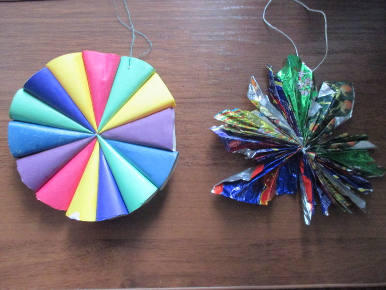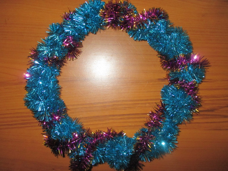 Рождественский веночек из новогоднего дождика (основа картонный круг).