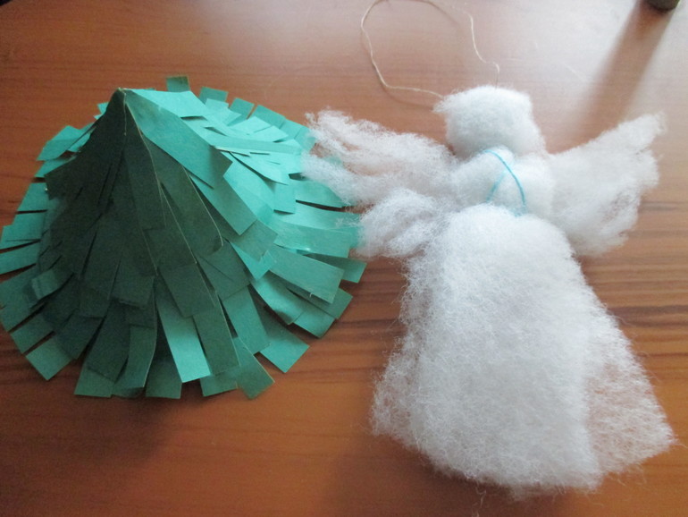 Ёлка из бумаги и ангелочек на живую ёлку.