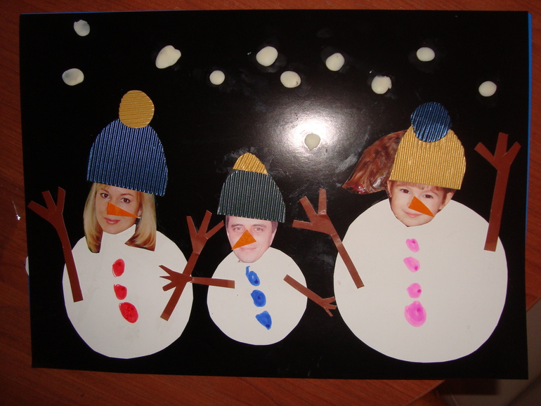 Очень весело было делать такую аппликацию, насмеялись с дочкой от души. Очень ее волновал вопрос почему папа получился самый маленький. Ну, не нашлось в архивах фотографий крупнее)))